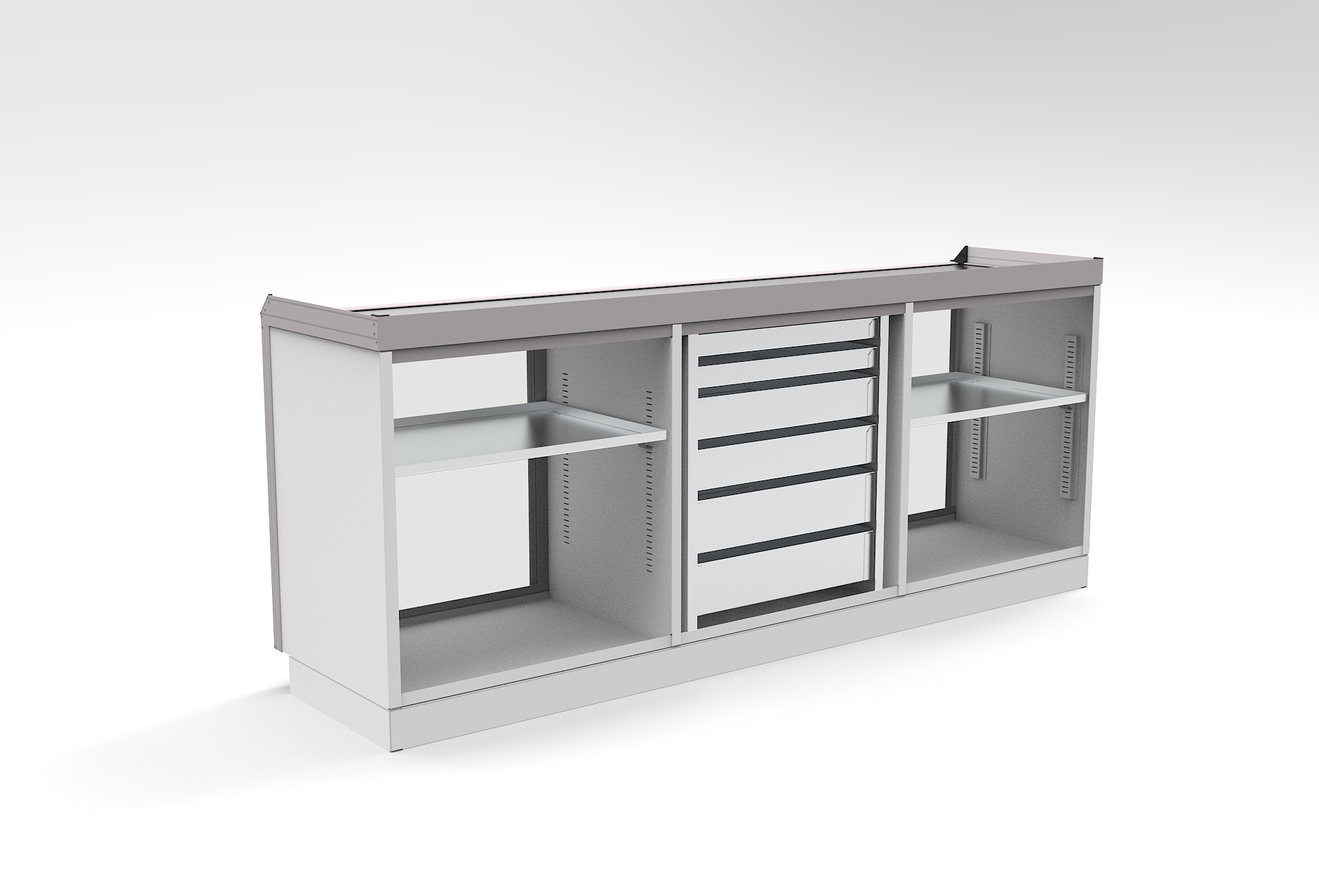 *This 72″W x 24″D x 38″T Aluminum Base Cabinet ships fully assembled and ready to use. Order processing time: 7-10 business days.