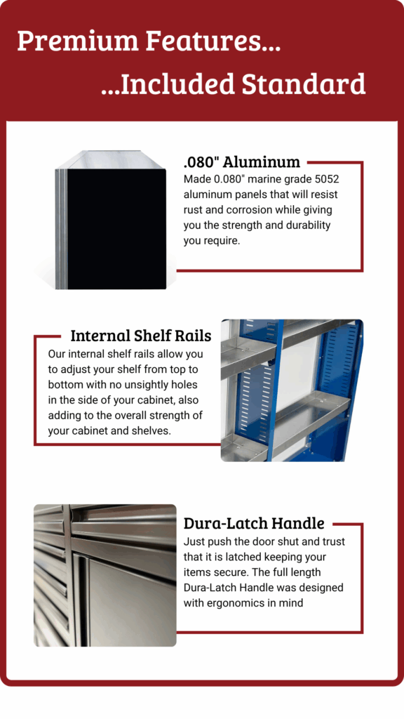 Designed for ultimate strength, organization, and easy installation. Our closet cabinets deliver professional quality for shop or garage build.