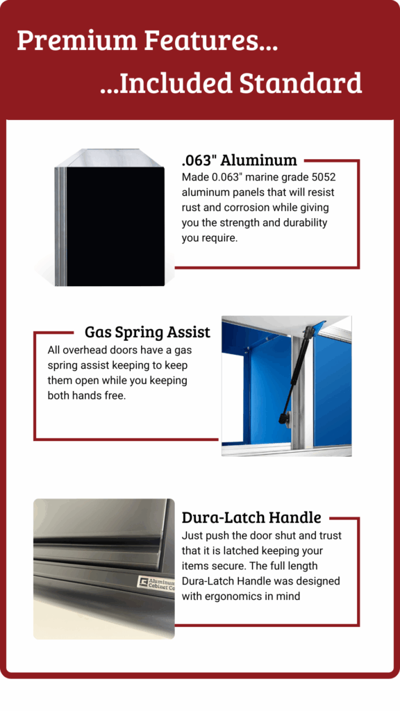 Designed for strength and reliability, this overhead cabinet is perfect for garages, trailers, and custom builds.