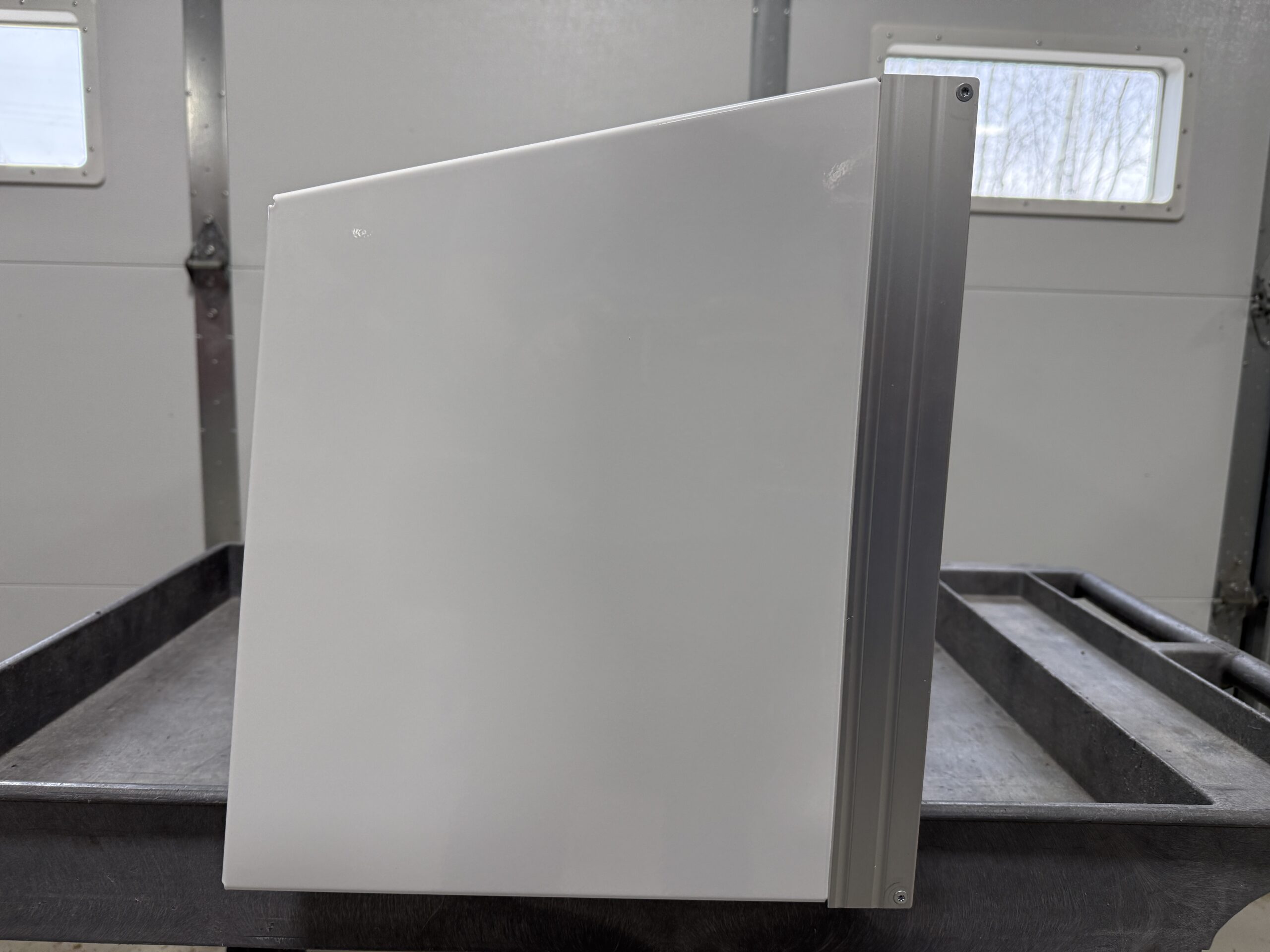 As a former display model, it may show a few signs of it’s journey (like mounting holes, scuffs, or light scratches), but don’t let that fool you — it is built with the same premium craftsmanship and durability you expect from Aluminum Cabinet Company. A little character, a lot of value!