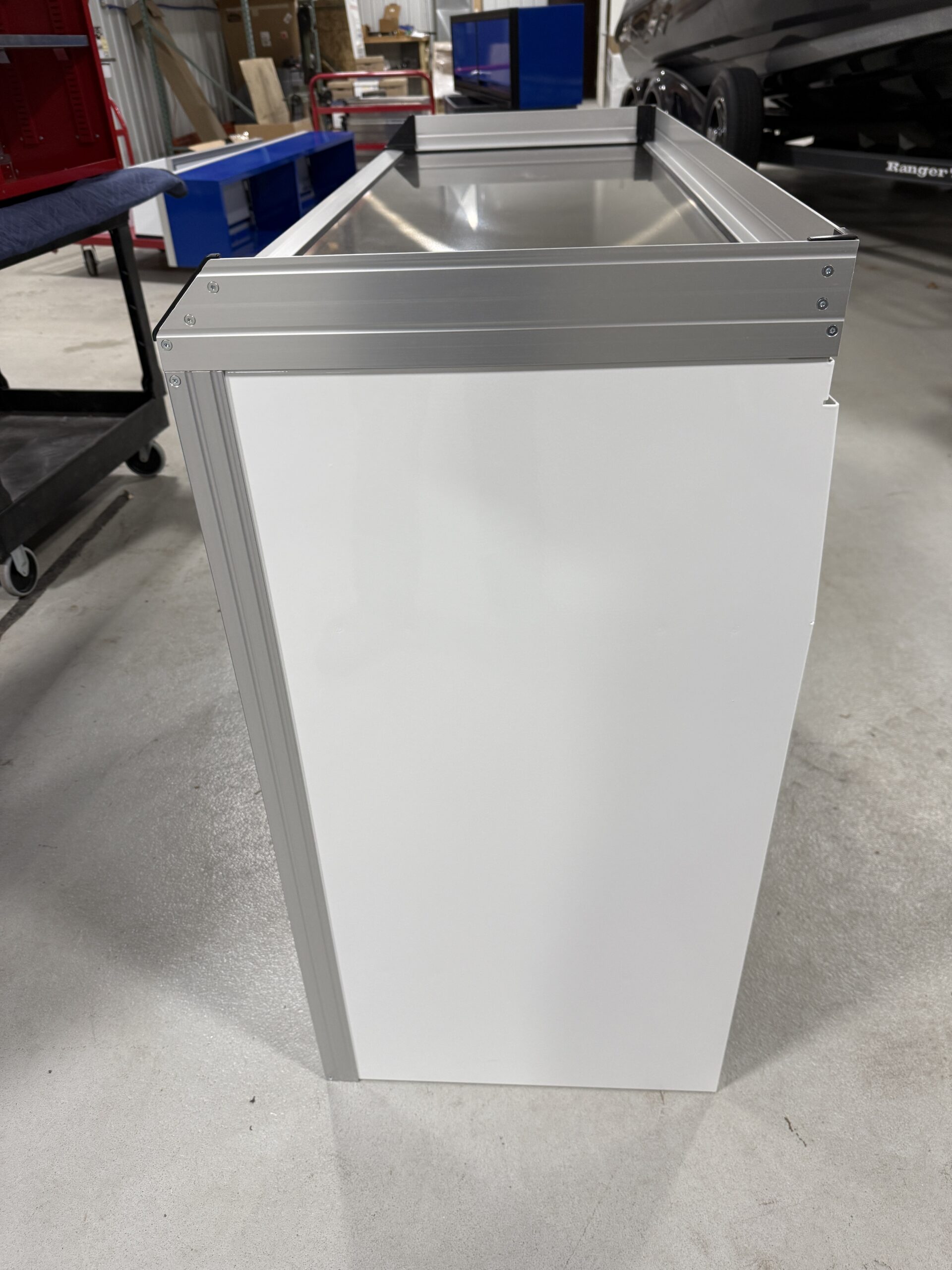 As a former display model, it may show a few signs of it’s journey (like mounting holes, scuffs, or light scratches), but don’t let that fool you — it is built with the same premium craftsmanship and durability you expect from Aluminum Cabinet Company. A little character, a lot of value!